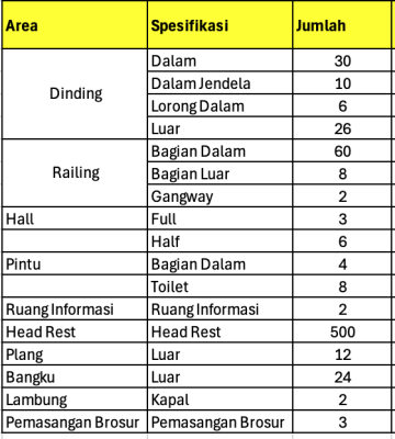 1. Ukuran per titik disesuaikan dengan ruang di kapal
